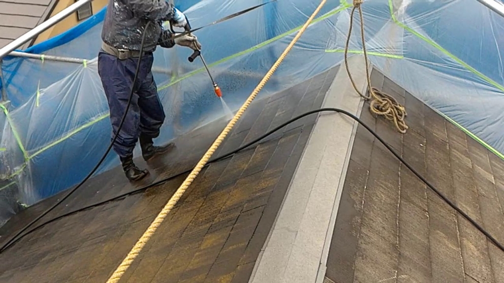 外壁塗装埼玉県川越市吉田新町より 屋根の高圧洗浄作業
