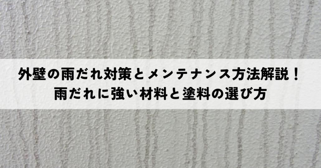 今回は、外壁の雨だれ対策として、適切な材料の選定、効果的な塗料の適用、そして定期的なメンテナンスの重要性について解説しました。