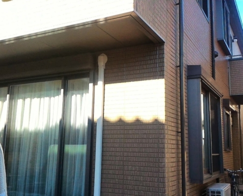 昨日、外壁塗装と軒樋、破風塗装が完了して、本日は残りの付帯部(竪樋・シャッターBOX・ベランダ笠木)の上塗り2回目を行いました。それと同時に配線・器具類の取り付け作業と、飛散防止メッシュシート外し・各所手直し・点検・清掃を行いました。