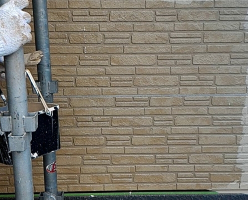 タイル調サイディング上塗り作業