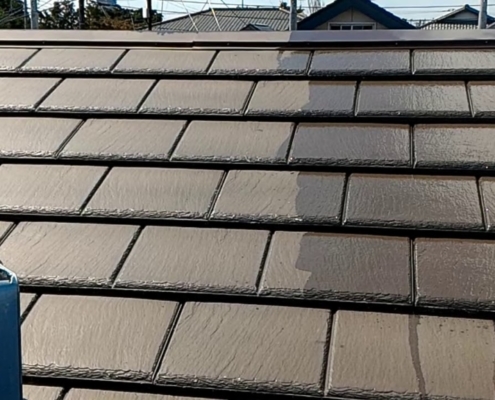 今日は屋根の上塗り1回目塗装作業を行いました。