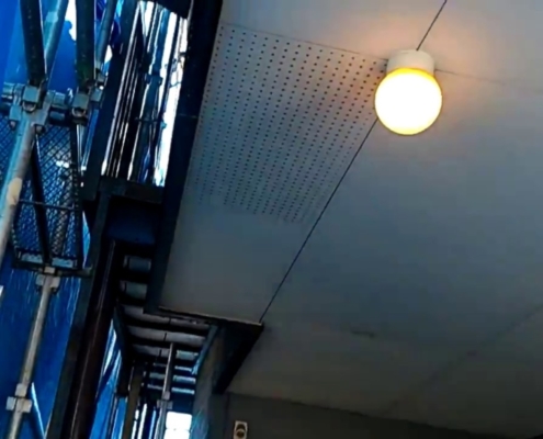 破風板腐食部交換作業もそろそろ完了するので、塗装作業の準備として本日、メッシュシートを張りにきました。